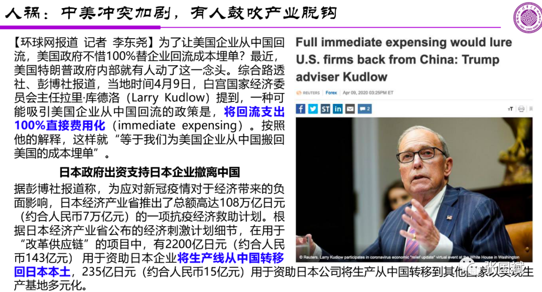 人祸就是中美冲突加剧,这个做起来不太容易,有这样的想法可以理解,因为毕竟一个国家的生产都依靠另外一个国家,这个国家会感到很不爽,但你能否长久地做到让产业回到自己本国去呢?这个不容易,需要他们做更多的努力。