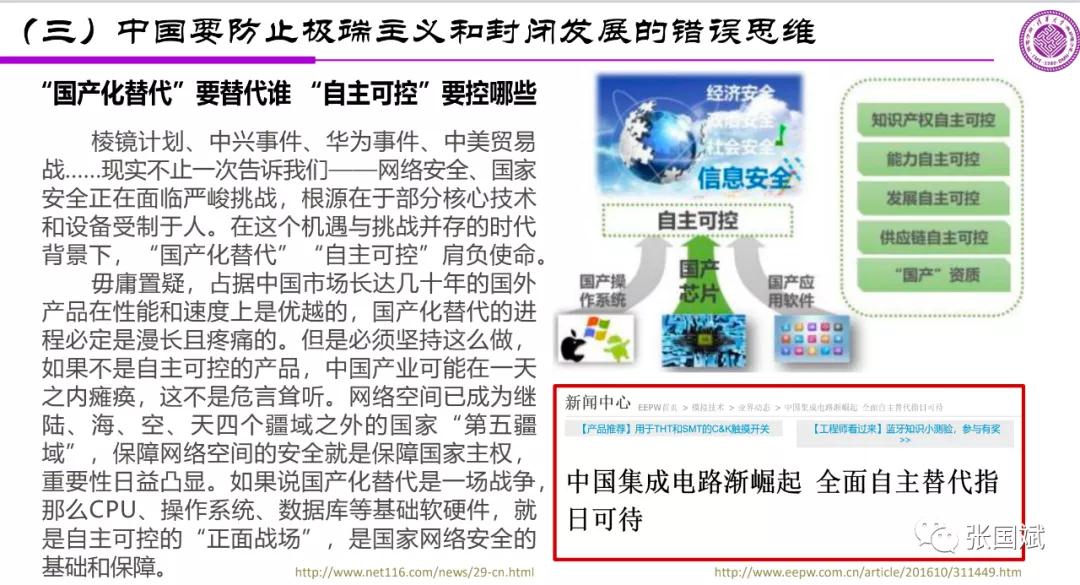 我想说,中国已经融入全球技术体系,不可能走回头路。因为我们看到,在一段时间当中,我们无论是专家还是有些人,大家都在呼吁我们要另搞一套,我认为这个想法是错的,因为我后面还会讲到这个问题。