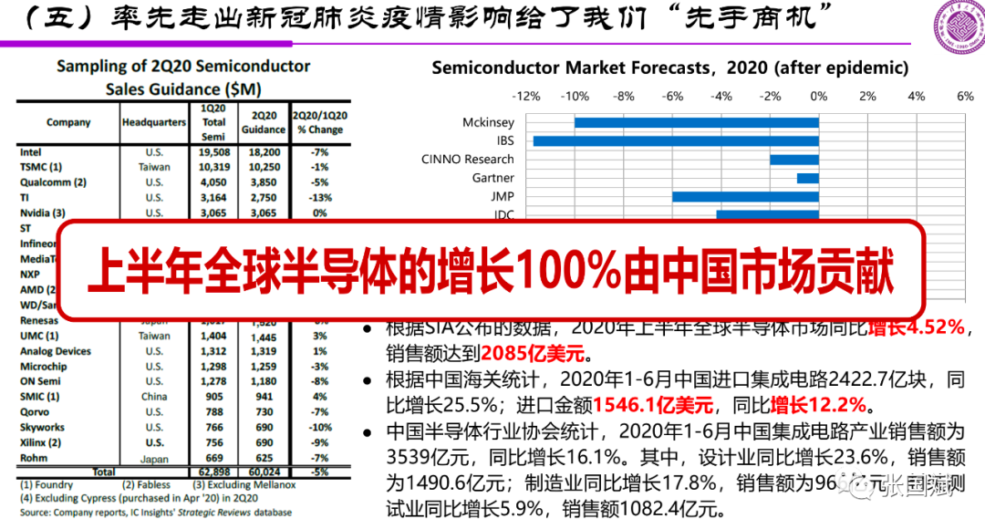 疫情带来的其它影响,就是对整个行业的需求是带来抑制,IDC的预测,手机下降12%,PC下降7%,电视下降6%,这是大家可以预测到的,半导体的收入比较分散,有人认为下降15%,有人认为没有下降那么多,今年的实际数据还是增长,让我们感到不知道怎么看这个事情,但事实上我们应该看到,它都有迹可循,这件事情并不是我们希望看到,但确实是可以找到背后的原因的。