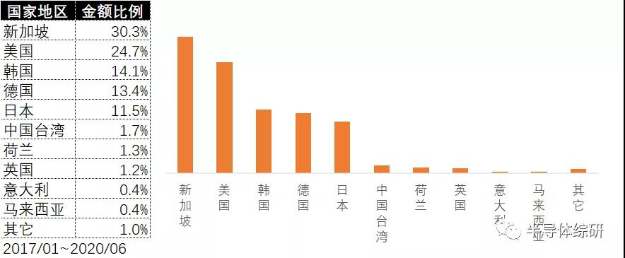 从进口来源地区看,美国、新加坡及德国排在前三位