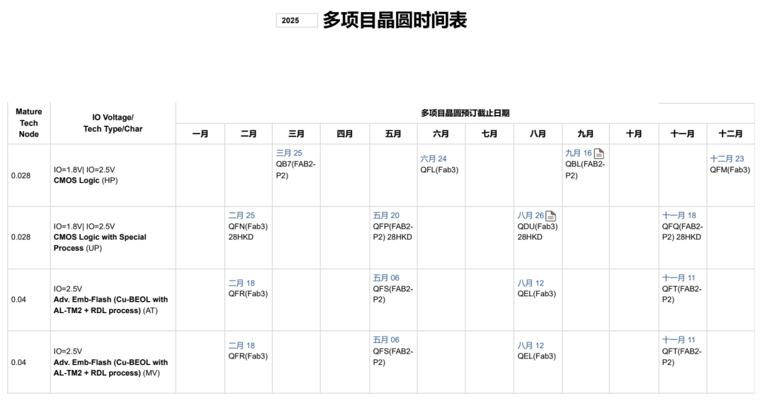 "AT"、"MV"、"HE"、"ATV"实际上是SMIC在其晶圆制造工艺中使用的一些标识符,通常与特定的工艺、技术类型和特色流程相关。SMIC 2025 MPW 班车表如下: 1. AT — Advanced Embedded Flash (Cu-BEOL with AL-TM2 + RDL process) "AT"代表“Advanced Embedded Flash”