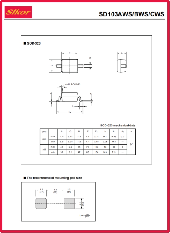 萨科微Slkor肖特基二极管SD103CWS规格书