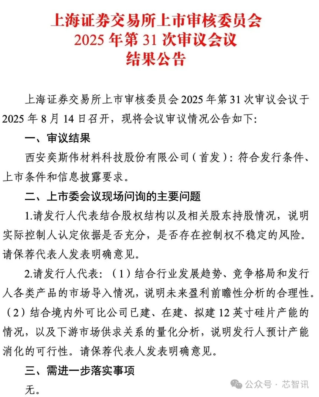 8月14日晚间,根据上海证券交易所官网信息显示,西安奕斯伟材料科技股份有限公司(以下简称"西安奕材")科创板IPO申请成功获得通过。